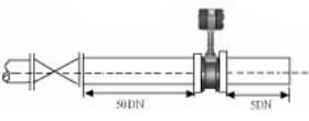 6.調(diào)節(jié)閥的安裝 如果流量計前后需要安裝調(diào)節(jié)閥,要保證流量計的前直管段≥25D,后直管段≥5D |